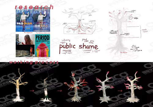 第五個是紀實攝影,主題是現(xiàn)代中國式審美。最后一個是跨專業(yè)項目,做了一個月經(jīng)主題的裝置藝術(shù)。