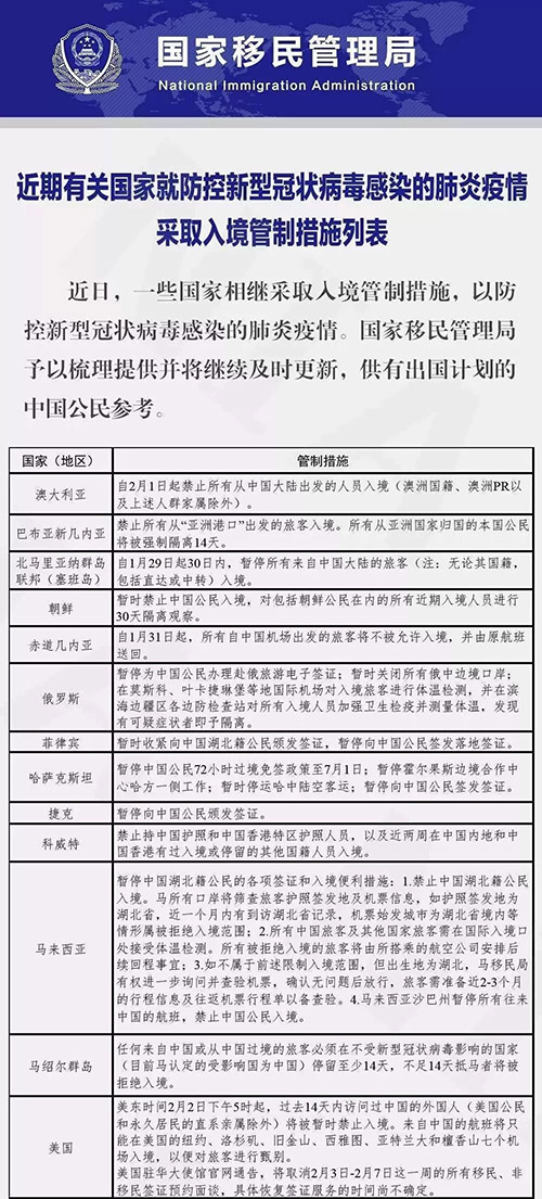 因為疫情的擴散與加劇,WHO將中國列為PHEIC也證明了這次疫情在全球范圍內都引起的關注和影響,部分國家也已經出臺了限制或禁止入中國入境的政策。