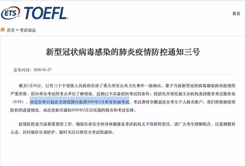 因為疫情的原因,為了避免出現(xiàn)聚集性疫情,雅思、托福以及GRE日前都通過官方渠道發(fā)布取消2020年2月份考試的通知。