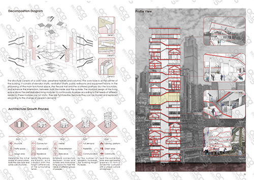 其實(shí),哪個(gè)都很喜歡,都是自己一點(diǎn)一點(diǎn)一點(diǎn)一點(diǎn)做的。其中,第四個(gè)up and down 那個(gè)項(xiàng)目真的影響特別深,除了前期推敲模型,從三層到三十層到最后的六十層的模型突變,后期手工模型也是每一塊板都是手工磨的。從早上9點(diǎn)到自習(xí)室晚上9點(diǎn)走,就這樣持續(xù)磨板,模型做了兩周才做下來。包括這個(gè)方案的圖紙,到遞交作品集的前一刻也還是再改這套圖。下面就簡(jiǎn)單跟大家介紹下這個(gè)項(xiàng)目。