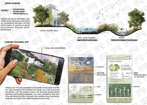 我的這個(gè)項(xiàng)目的理念是城市農(nóng)場(chǎng),設(shè)計(jì)對(duì)象是基于來(lái)場(chǎng)地游玩的市民和游客。不僅對(duì)場(chǎng)地本身做了對(duì)象需求導(dǎo)向的景觀配套設(shè)計(jì),如雨水花園、增設(shè)觀光車(chē)路線(xiàn)等,還提出了線(xiàn)上參與的策略,利用物聯(lián)網(wǎng)技術(shù)讓場(chǎng)地面向的城市農(nóng)夫們能夠?qū)崟r(shí)監(jiān)控到自己的作物生長(zhǎng)情況,線(xiàn)上線(xiàn)下共同參與。