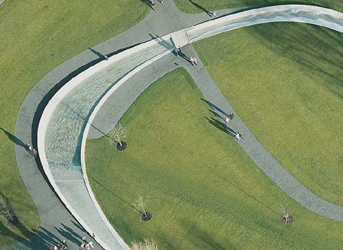 A:凱瑟琳古斯塔夫森。我是因?yàn)榇靼材韧蹂o(jì)念噴泉知道這位景觀設(shè)計(jì)師的,她的作品簡(jiǎn)約又大氣,運(yùn)用了現(xiàn)代的線(xiàn)條卻能與自然環(huán)境融為一體。很多時(shí)候她都是從場(chǎng)地本身的地形和肌理出發(fā),結(jié)合自己的設(shè)計(jì)元素創(chuàng)造景觀。我覺(jué)得這是園林設(shè)計(jì)師需要遵守的原則。